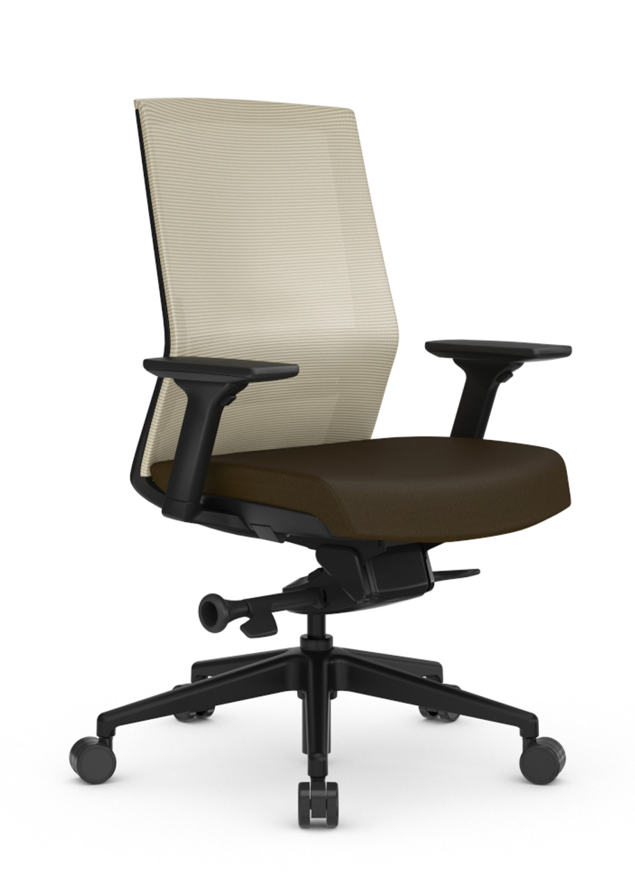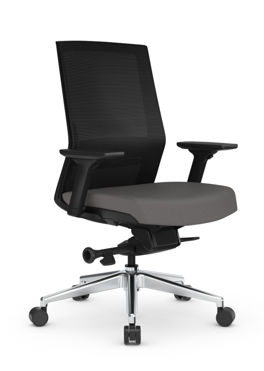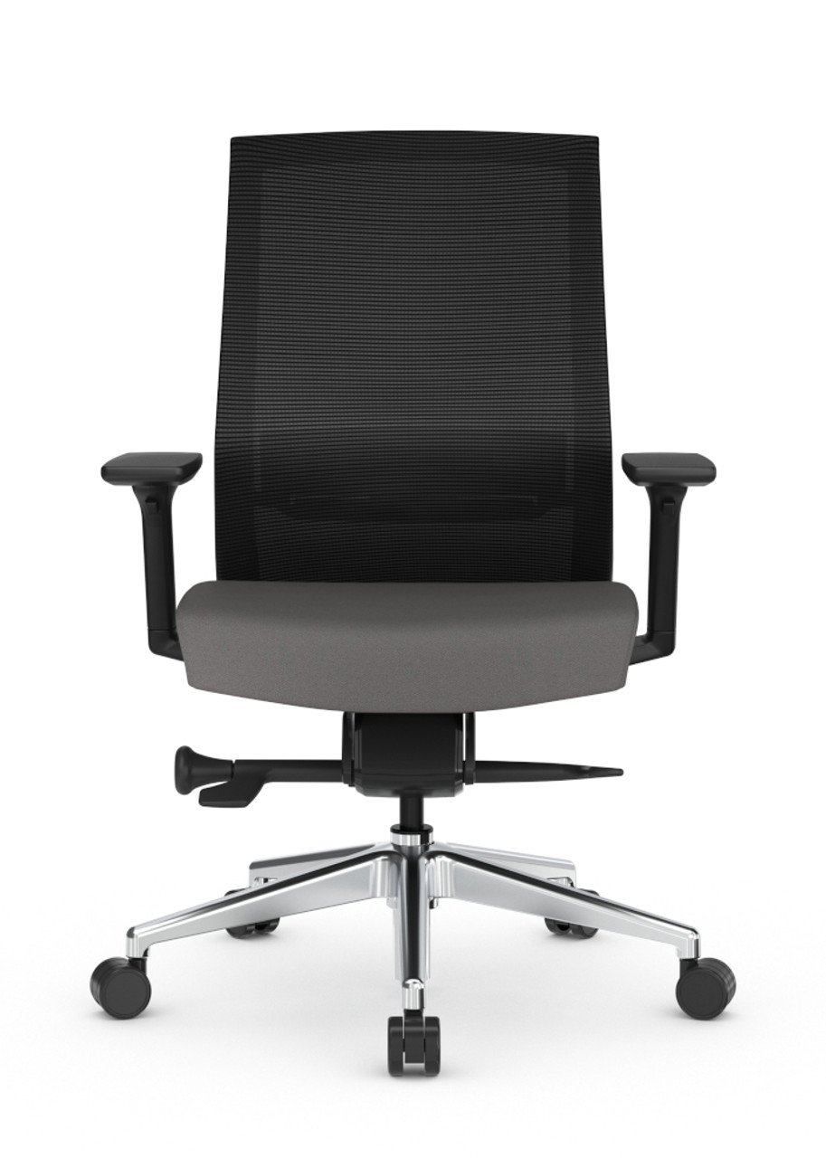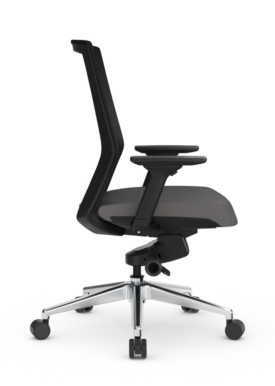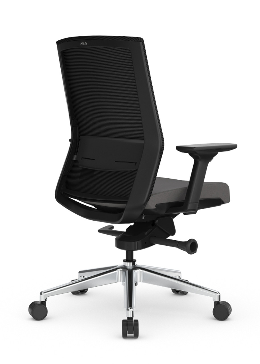 AMQ has mastered the art of the sit to stand desk and now they have 'knocked it out of the park' with this new executive task chair. Perfectly at home as an exquisite all day task chair, scaled down executive task chair or a conference room chair. The Zilo conference room chair has the perfect tilt and recline metrics down 'pat' and the tilt motion is about as good as it gets. Built with a highly desirable synchro-tilt mechanism, the Zilo back reclines at a rate of 2:1 to that of the seat itself. This version comes in a black frame (see the Grey Frame version here). Seat covers are removable for cleaning.