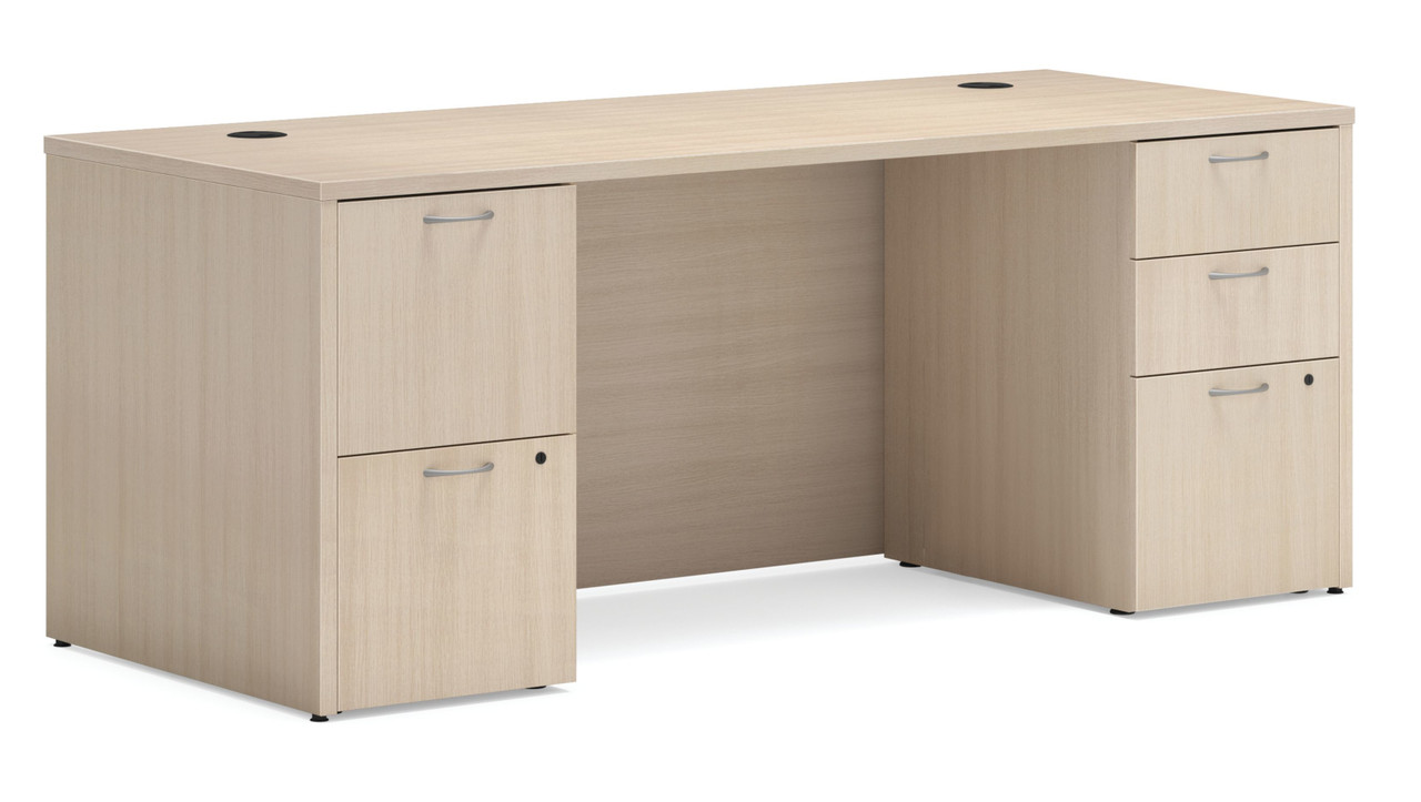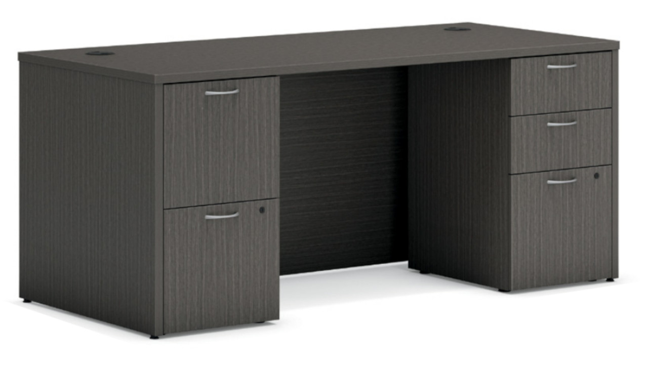 • Double–pedestal desk with drawers: One box/box/file pedestal, one file/file pedestal