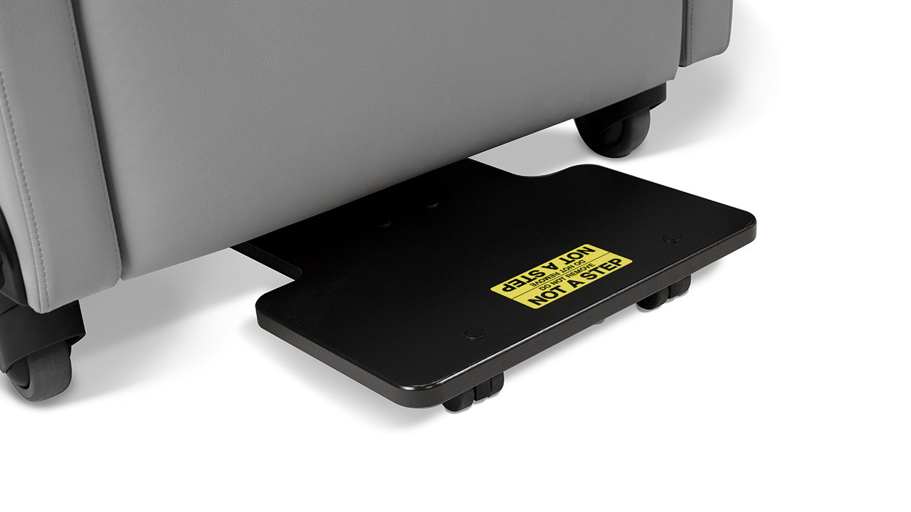 - Optional Foot Tray pulls out to support user’s feet in seated position. Slides underneath recliner when not in use. Not intended as step.