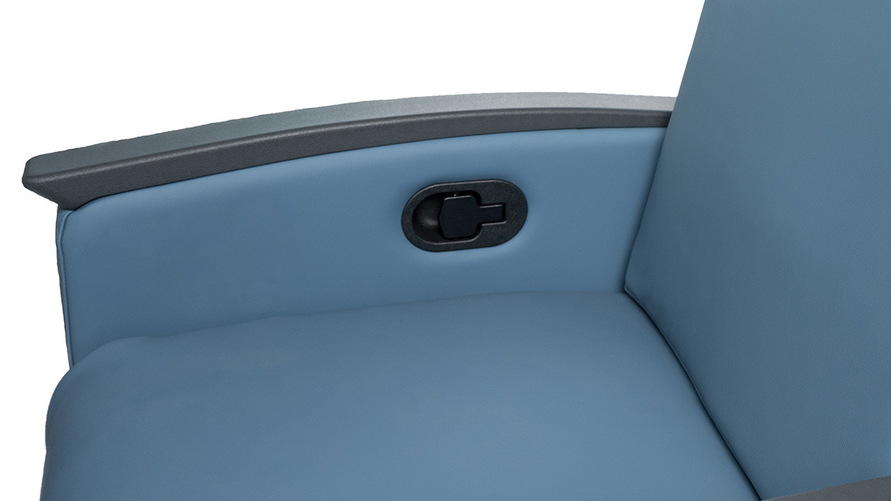 The Knú by La-Z-Boy Healthcare 450 Series Kure Mobile Patient Room Recliner is designed for uncontrolled healthcare environments. The 450 Series Mobile Patient Recliner has independent leg support and back angle adjustments and is a practical choice for a utility recliner, perfect for patient rooms, oncology, and labor/delivery contexts, as well as other 24/7 healthcare settings. Stacked with numerous other high-end features, this recliner is durable and easy to clean for high-use areas.