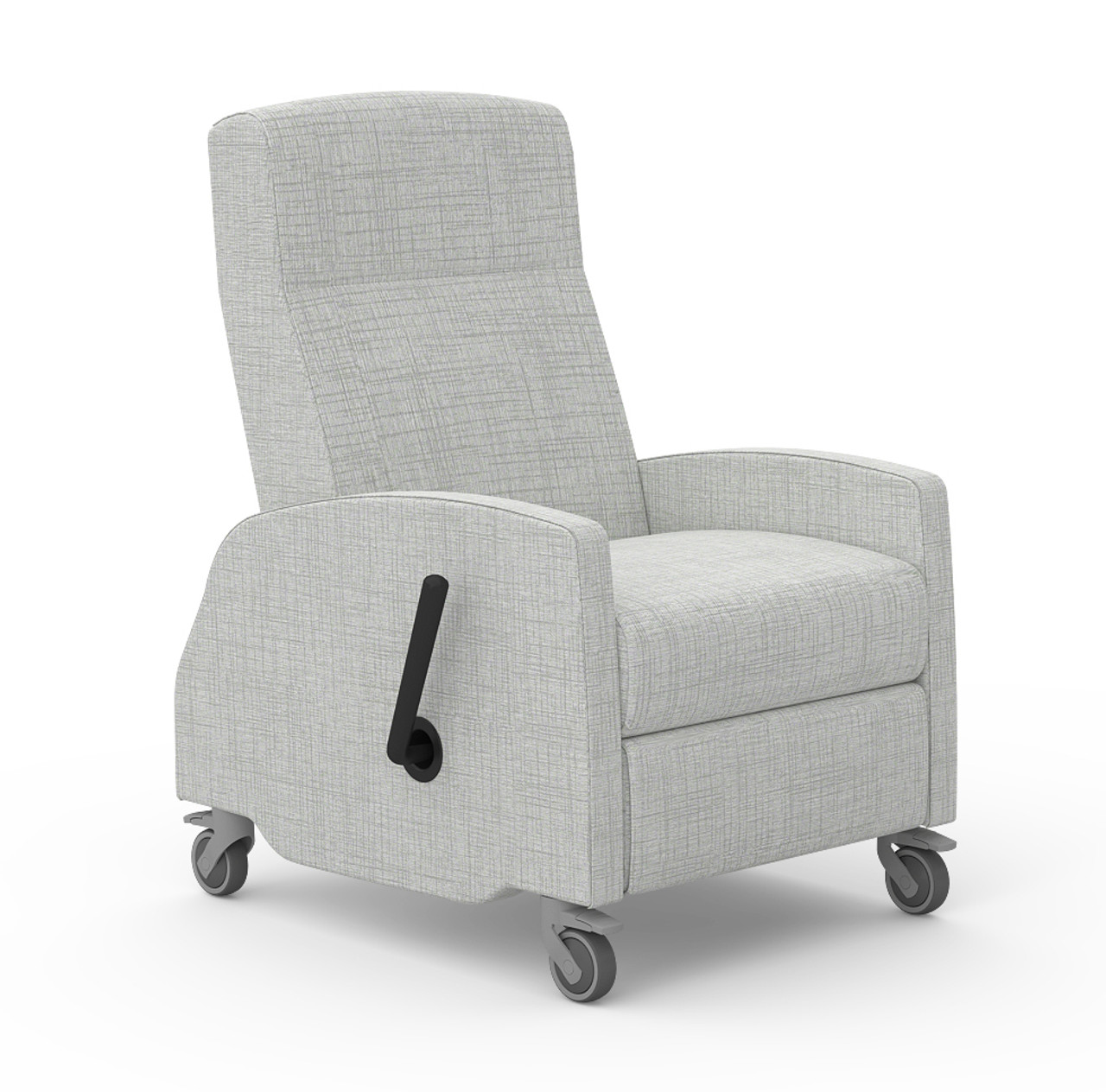 - Optional 4" Two Caster Lock & Steer: Controlled by 3-position lever located at back of chair on left (facing) arm. Steer setting locks rear casters to forward-facing orientation. Neutral setting allows all casters to swivel freely. Lock setting locks recliner into stationary position.