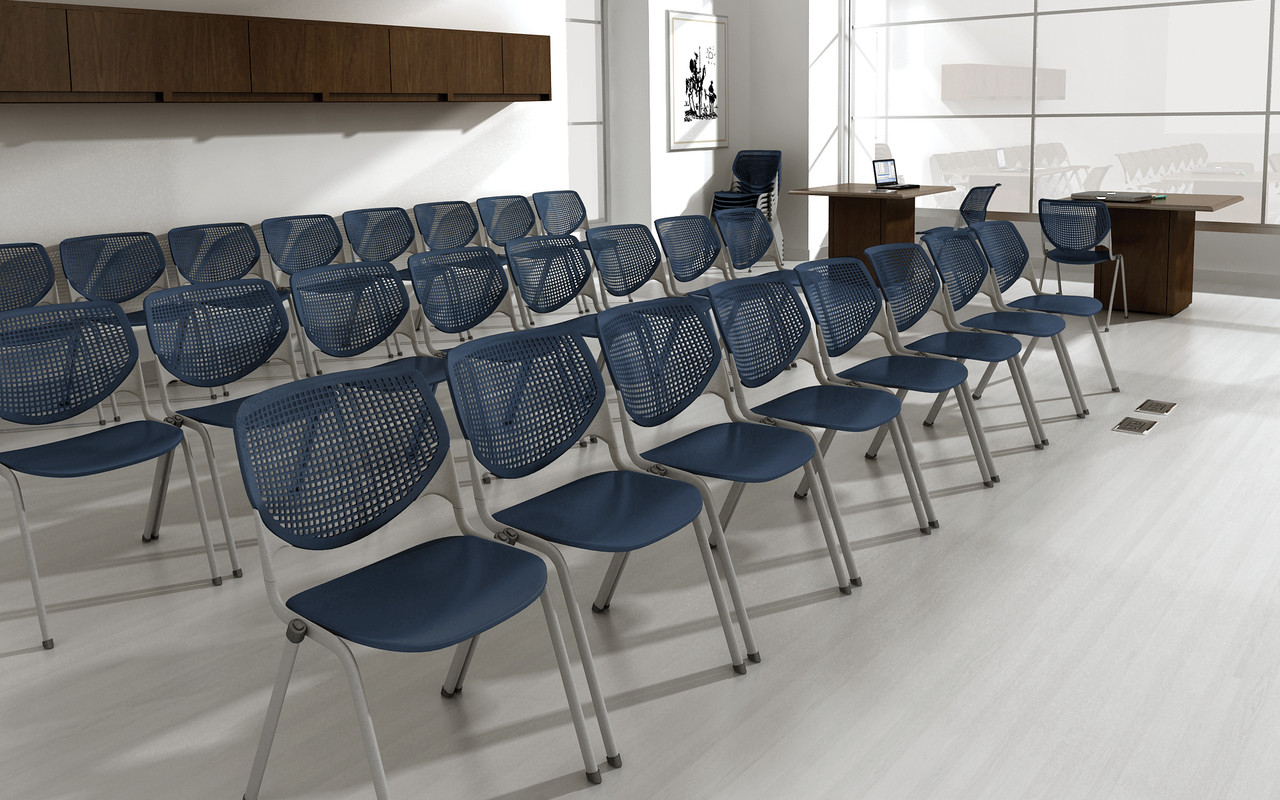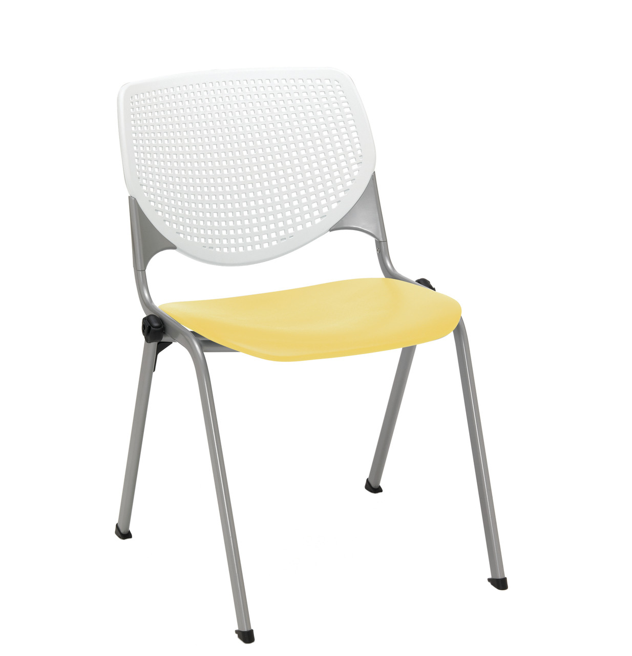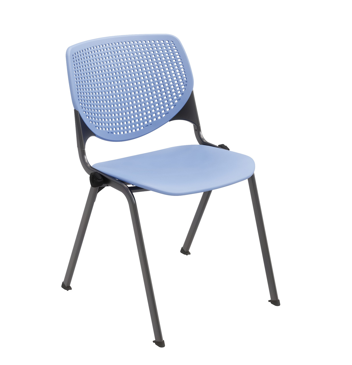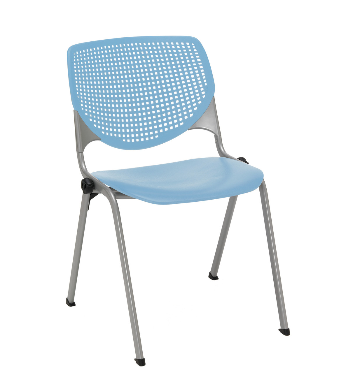 This Kool chair by kfi is the coolest multi-purpose stacker around. It comes in quick-ship polypropylene colors with a perforated back for air circulation and a 15 gauge tubular powder-coated frame in silver. This versatile chair is at home in training areas, cafeterias or as guest seating and can stack 15 high for storing! It has nylon glides and permanent ganging devices attached to the chair. Please call us if you are interested in a chair dolly for moving and stacking these. *An order of more than a dozen chairs may increase lead time to 2-3 days!