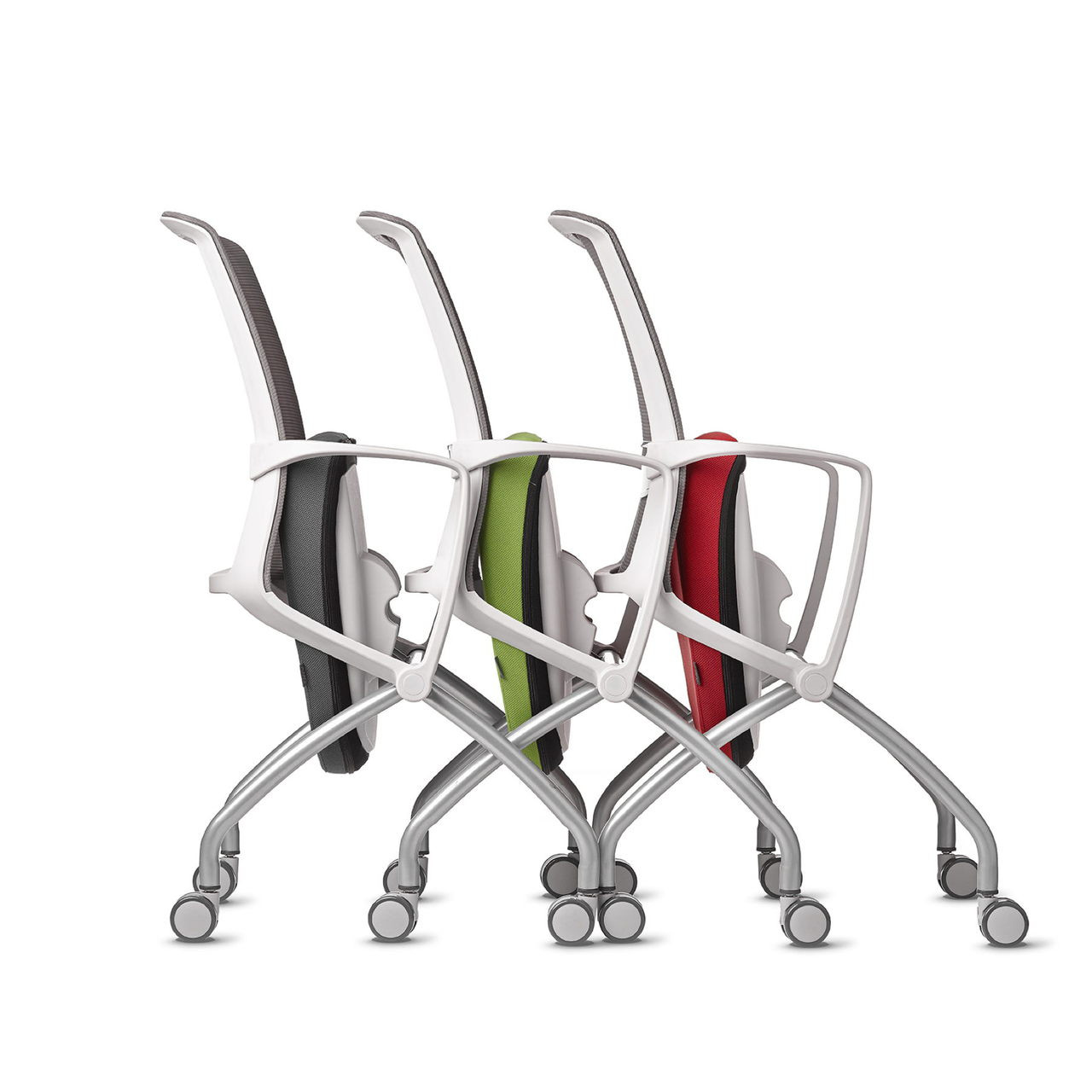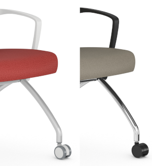 AMQ has done it again with this stunningly contemporary and versatile nesting mesh stacking chair! Perfect as a conference room chair, training seminar seat, or any transitional group context where mobility, easy storage and clean-up is required. The Tizu mesh chair has a supportive mesh back, soft casters, sturdy arms, and plush cushion seats that have washable color covers, which are easily removable for ease of cleaning. This nesting chair with casters is available with a black or off white frame. AMQ factory warranty covers all parts for 10 Years. Apologies, but the factory cannot ship these chairs to a residential address! Please order ONLY to a commercial zone.