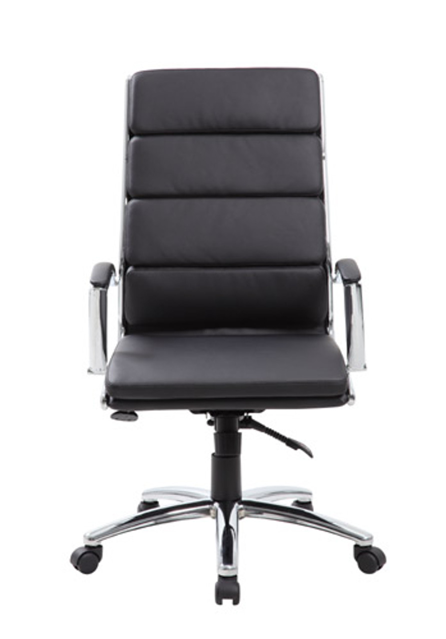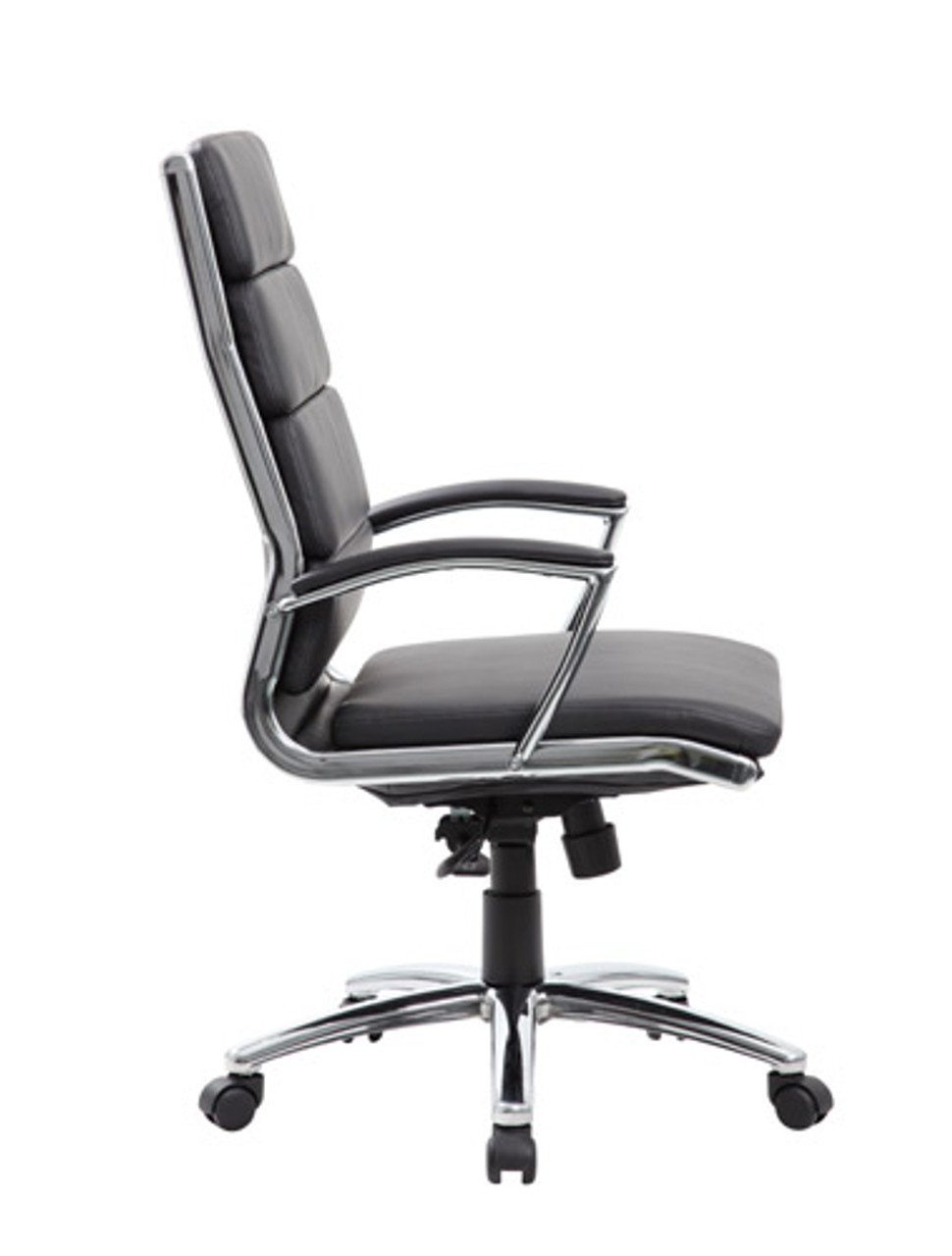 Upholstered with ultra-soft, durable and breathable leather like urethane, this executive chair is both durable and stylish. It is built to last with a heavy duty paddle spring tilt mechanism and a large chrome base for added stability. Available in MAS Certified Green upholstery.
