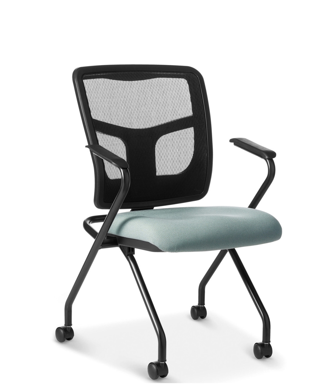 The YS70N is a perfect complement to any of the models from the rest of the YES series. Flip the seat up, store it away... flip the seat down, ready to go all day! With a convenient rolling folding chair design, the YS70N nests effortlessly, making it easy to use and even easier to store. This rolling folding chair features a flip-up seat for compact storage, a cool mesh back, and a choice of upholstered seat fabrics. 12-Year Limited Warranty.