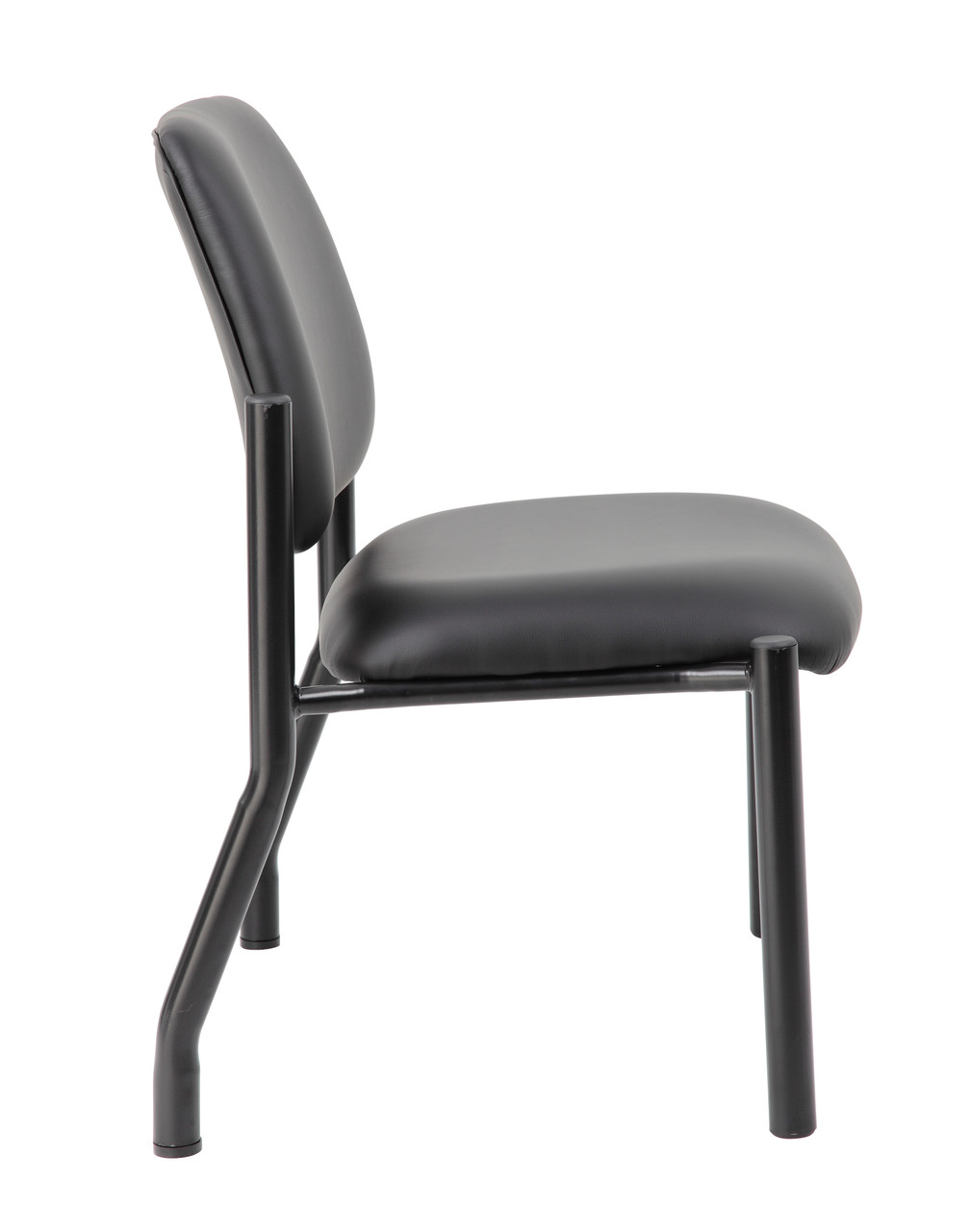 This guest chair is upholstered in antimicrobial vinyl for easy cleaning. This chair features a black powder-coated, heavy-duty tubular frame and a 400 lb. user weight capacity.