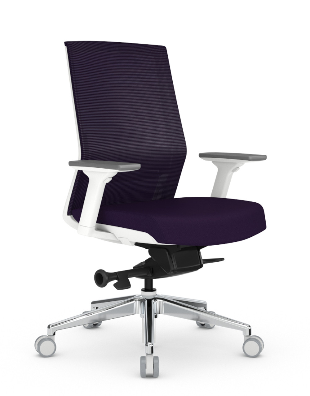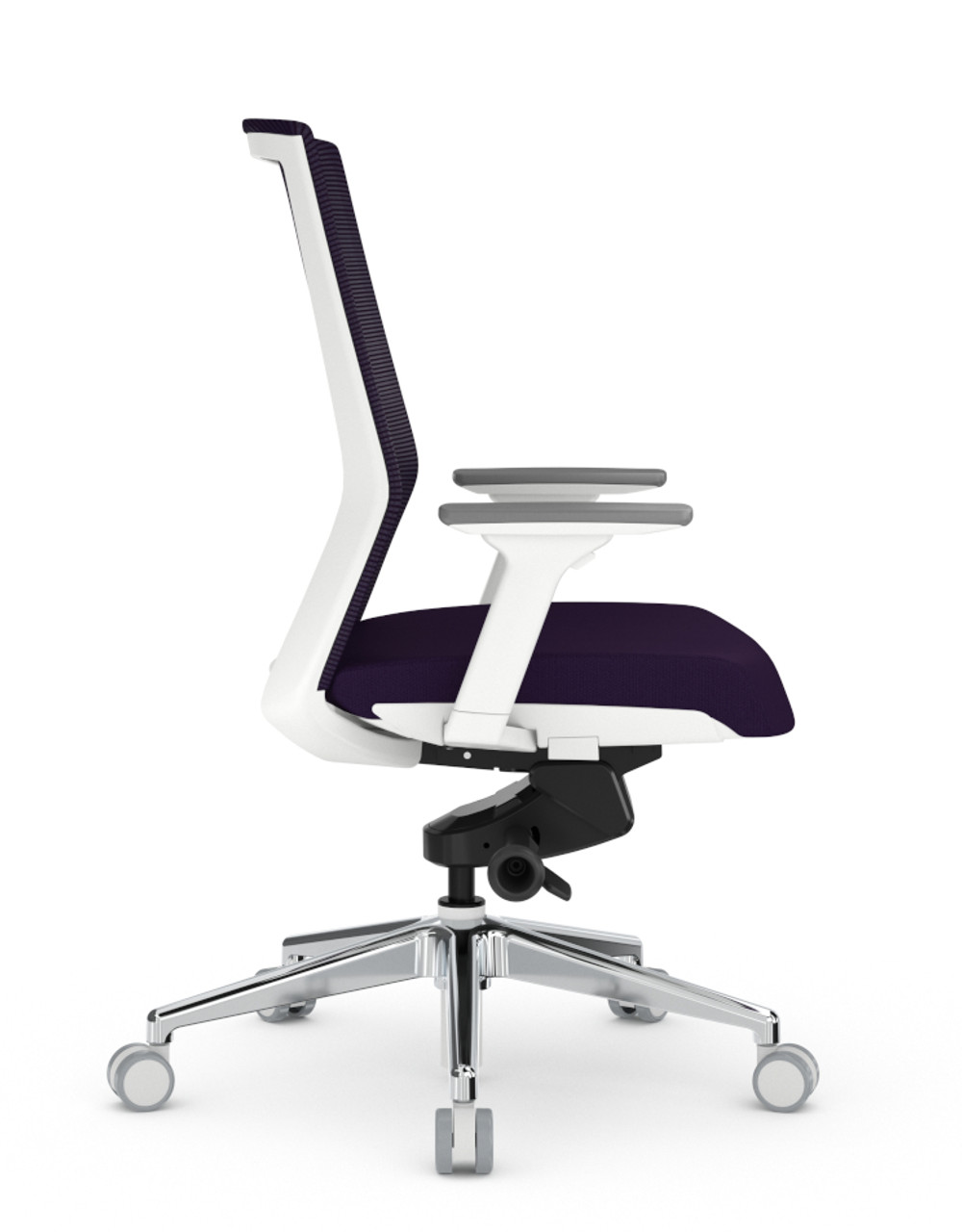AMQ has mastered the art of the sit to stand desk and now they have 'knocked it out of the park' with this new executive task chair. Perfectly at home as an exquisite all day task chair, scaled down executive task chair or a conference room chair. The Zilo conference task chair has the perfect tilt and recline metrics down 'pat' and the tilt motion is about as good as it gets. Built with a highly desirable synchro-tilt mechanism, the Zilo back reclines at a rate of 2:1 to that of the seat itself. This version comes in a off white frame with Grey mesh back section and is delivered with the highly popular Buzz 100% Polyester fabric (Antimony Free Yarn) seat covers and yes they simply zip off if you have to remove them for cleaning.