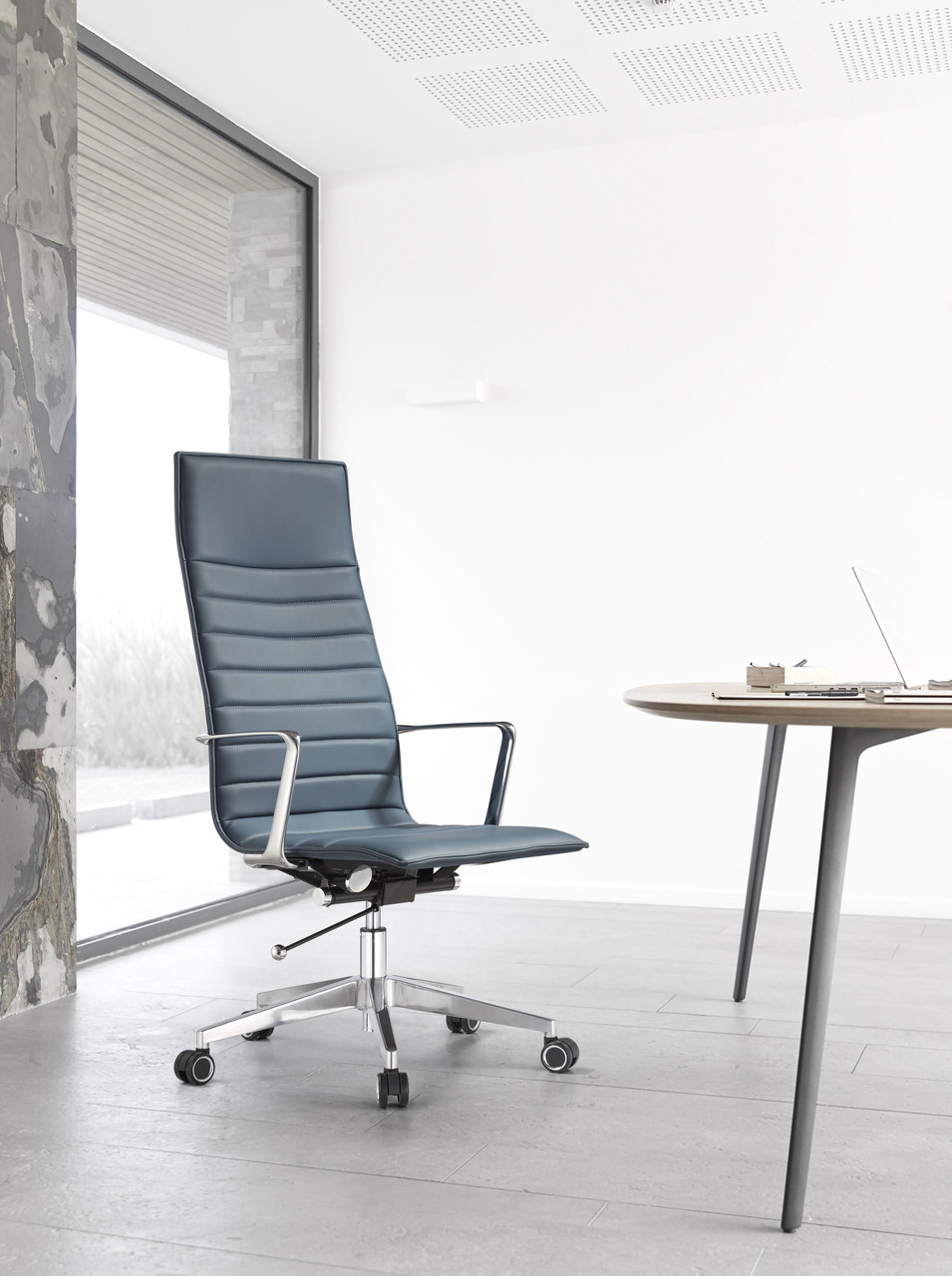 The NEW Woodstock Joe conference chairs for conference, management or executive applications are readily available from both our west and east coast warehouses. Our Woodstock models carry a 10 Year Factory Warranty and are upholstered in a Nappa Vinyl. Need a sample to touch and feel? Contact us and we will send them to you same day (just like the chair). Pay a little more and get a lot more! This high back executive desk chair is a serious model designed to stand up in commercial contract settings.