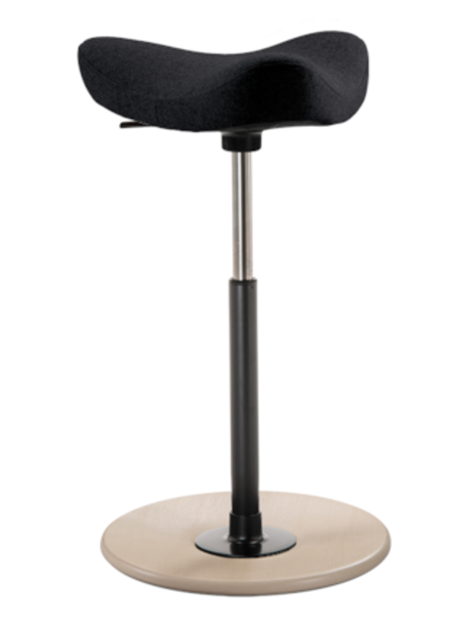 A blend of a chair and a standing support the Varier Move Tilting Saddle Stool combines the best of both worlds. The sculpted HR foam saddle seat supports your every move and position change. The slightly 'graded' disc base allows you to create the most optimal seating angle for your work level. This ergonomic sit-stand stool has positioning that increases the angle between your upper and lower body which improves your concentration and focus at the same time lessening the pressure on your spinal column. The Varier Move Saddle Stool keeps your back and abdominal muscles active at all times and prevents tension in the neck and shoulder regions. Active sitting improves your circulation and boosts oxygen levels in your blood while helping you concentrate and stay focused longer.