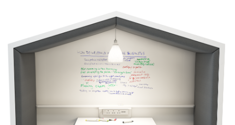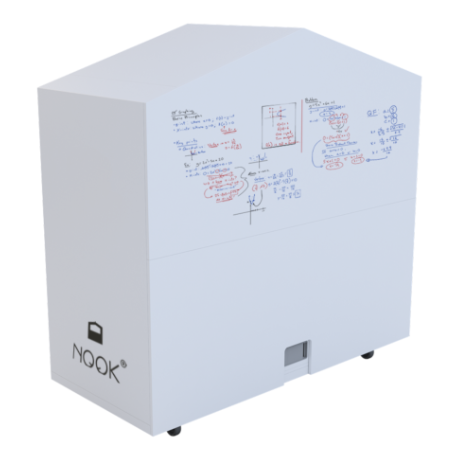 The newest and hottest idea on the market is the "pod" - or private (and often) mobile unit within the open office - that allows employees some quiet and private time. "NOOK", a new-ish company out of Bristol, UK has quickly become successful with small footprint, mobile, modular units - or "Nooks" for those who want a more intimate collaboration location that is somewhat removed but not isolated from the office like an enclosed phone booth. The "Nook", aptly called, provides employees in the often noisy and chaotic open office environment, a more quiet respite where they can better concentrate and refuel. Nook office meeting pods are a godsend for introverted people who need a place away from constant stimulation in order for them to have their best ideas! It's modular flexibility also means that it can fill many needs. A Nook pod can be used as a breakfast nook in the morning, a lunch meeting space, or a quiet concentration area throughout the day, as well as a rest spot at trade shows or other events. This Nook Huddle Pod functions as a hide away from the hustle and bustle of the busy office and is perfect for small meetings and creative think-tanks! At 30" deep and on casters, this mobile unit can go anywhere. This model is standard with an upper back panel in white laminate; whiteboard can be added for an upcharge. (*Please contact us to further customize your Nook with 5 other Luxe custom laminates.) The Nook Huddle Pod also includes an overhead LED lamp, power strip with 2 power outlets and 1 USB-A, 1 USB-C, and a table with a pole/panel leg. For a more social environment, Nook Huddle Pods can easily be daisy-chained together. Its compact size allows it to be moved through most doorways without breaking it down, but it can also be disassembled by an inexperienced user in 30 minutes and installed in 2 hours!