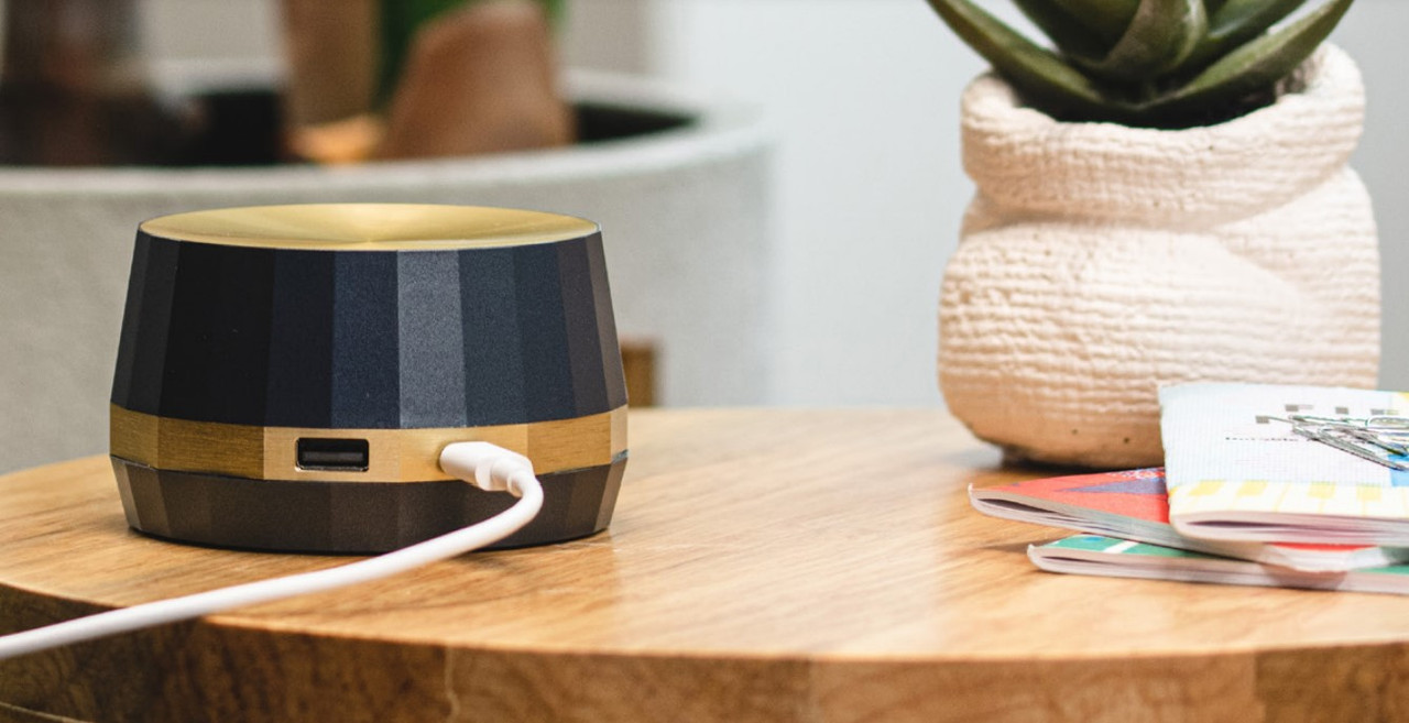 The Luna desktop charger is designed to be a statement piece that provides a powerful charging capability for all kinds of devices. This sleek stand-alone charger features clean geometry and simple color paired with convenient and powerful charging capabilities. The metal accent on the Luna desktop charger evokes a sense of luxury designed for hospitality and workplace environments. The freestanding design is sculptural and tactile, balancing art with the technology inside. Equipped with one USB-A port and one intelligent Power-Delivery USB-C® port—this stand-alone charger offers the fastest possible charging speed and power permitted for today’s devices. The 60-watt power allows for laptops to be charged by simply connecting with a USB-C® charging cable, removing the need for large laptop bricks.