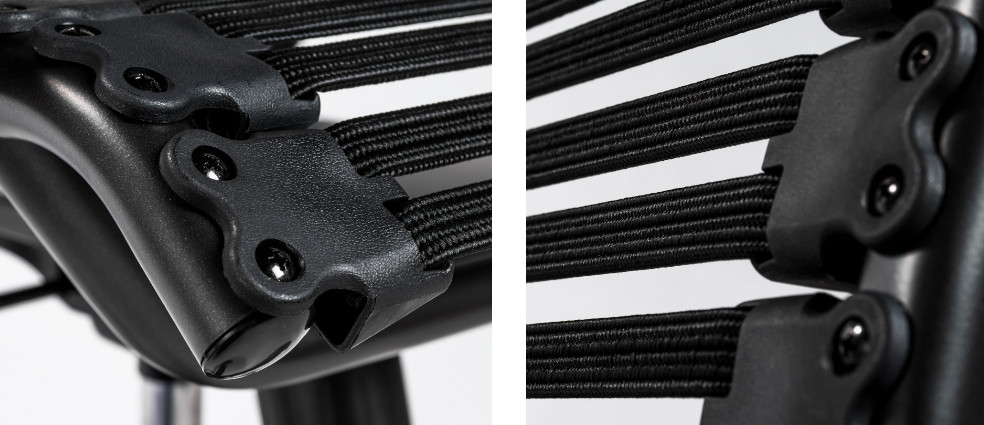 - Seat & Back: Flat Bungie Bands with Nylon Fittings