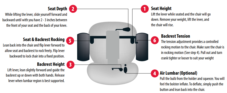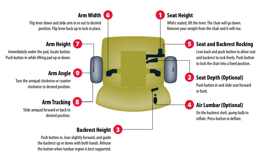 Arm Options: Standard Armless, 4D Height, Width, Angle and Depth Adjustment with Pivot Armcaps