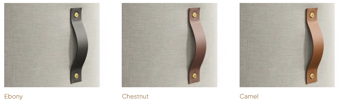 - Optional leather pulls: Chestnut, Camel and Ebony Black