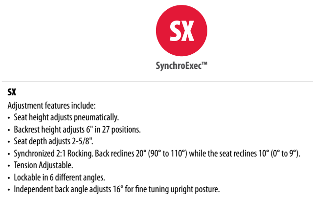 - QuickBack allows you to move the backrest through an unprecedented 6" range in 27 increments