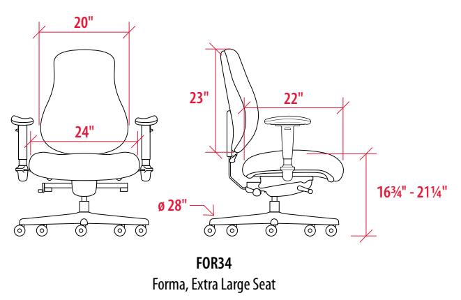 - Office chair with a 24" large seat (See here for Forma with Medium or Standard Seat)
