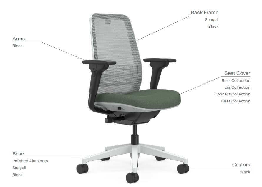 AMQ's new Personality Plus task, executive chairs are perfectly at home as all day task chairs or scaled down executive task chairs. As always they come with a lumbar support and seat depth adjustment for the ultimate comfort. Customize to your liking - with two frame colors, three base options, optional headrest and your choice of seating fabrics for the removable seat cover! This version comes in a black frame, black base, backrest and casters (see the Personality Plus Seagull Frame Task Chair here). The seat has a 100% Polyester seat cover that zips off for cleaning! This chair ships Free of course. AMQ factory warranty covers all parts for 10 Years.