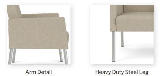 The Mystic Lounge Panel Arm Bariatric Guest Chair by Lesro offers stylish performance for any reception or lounge seating application. The chair comes offered in over 200 different fabrics and vinyls. More fabric/vinyl options can be viewed in the links embedded in the description. The seat is padded with an Eco-friendly soy based foam to lessen the impact on the environment. The chair legs are available in 5 durable powder coat finishes. The heavy duty construction gives this chair a 750 pound user weight capacity! Minimal Assembly Required.