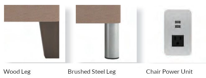 - Table and Sofa legs available in wood finishes or a brushed steel finish